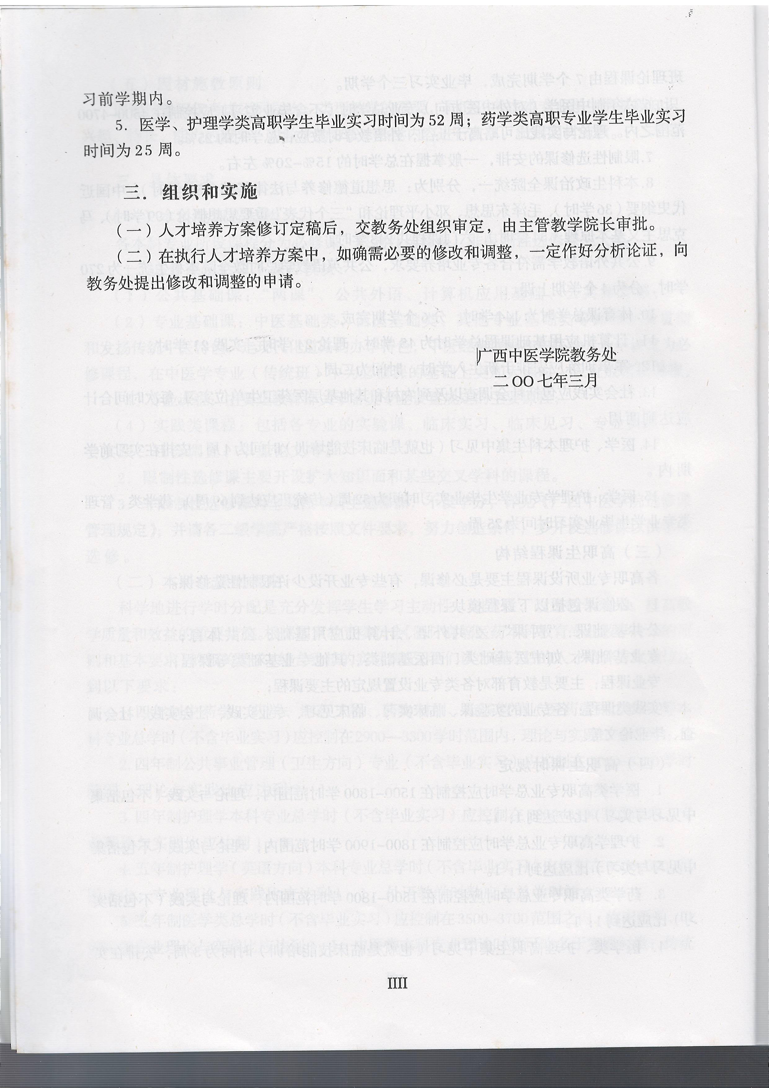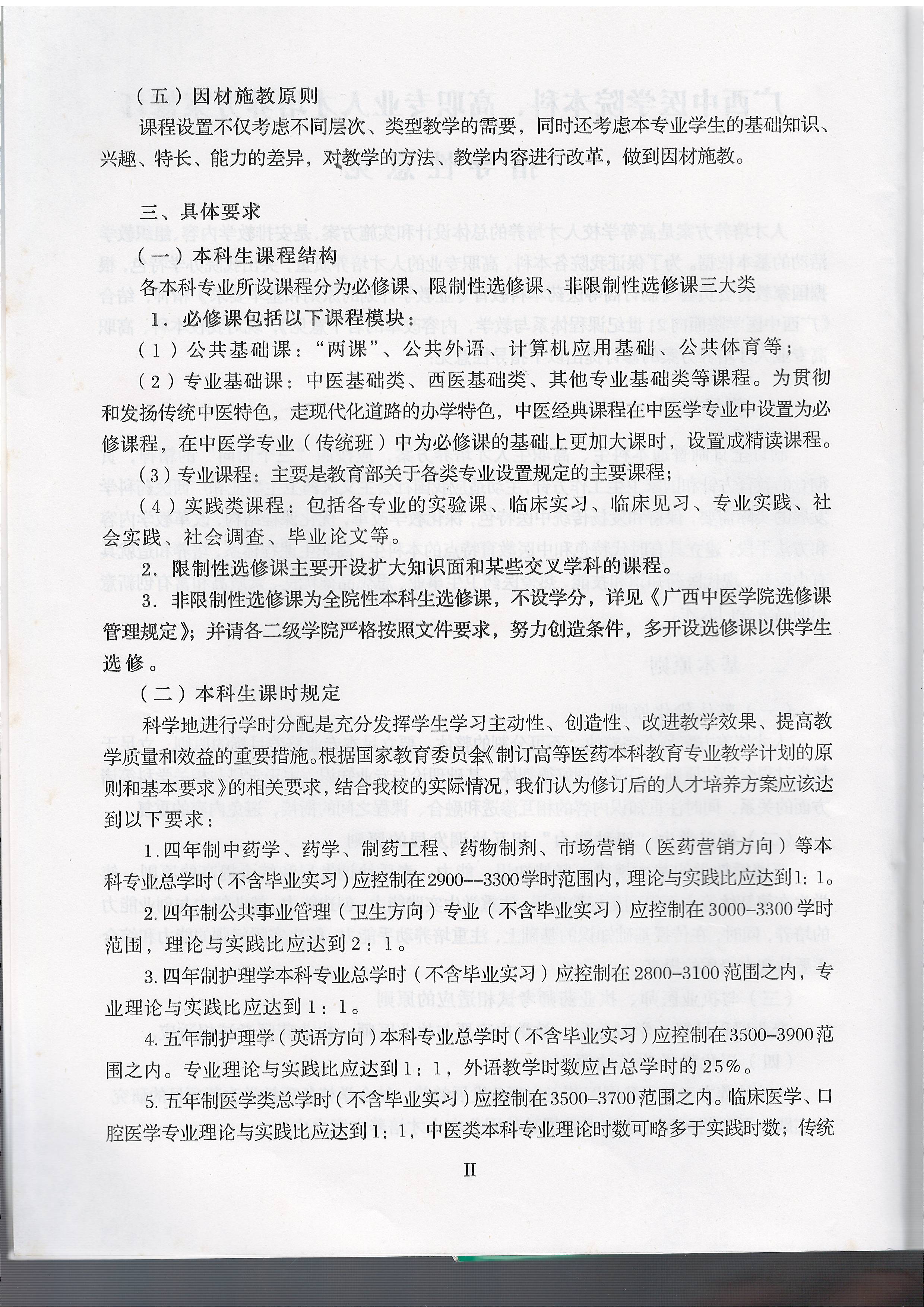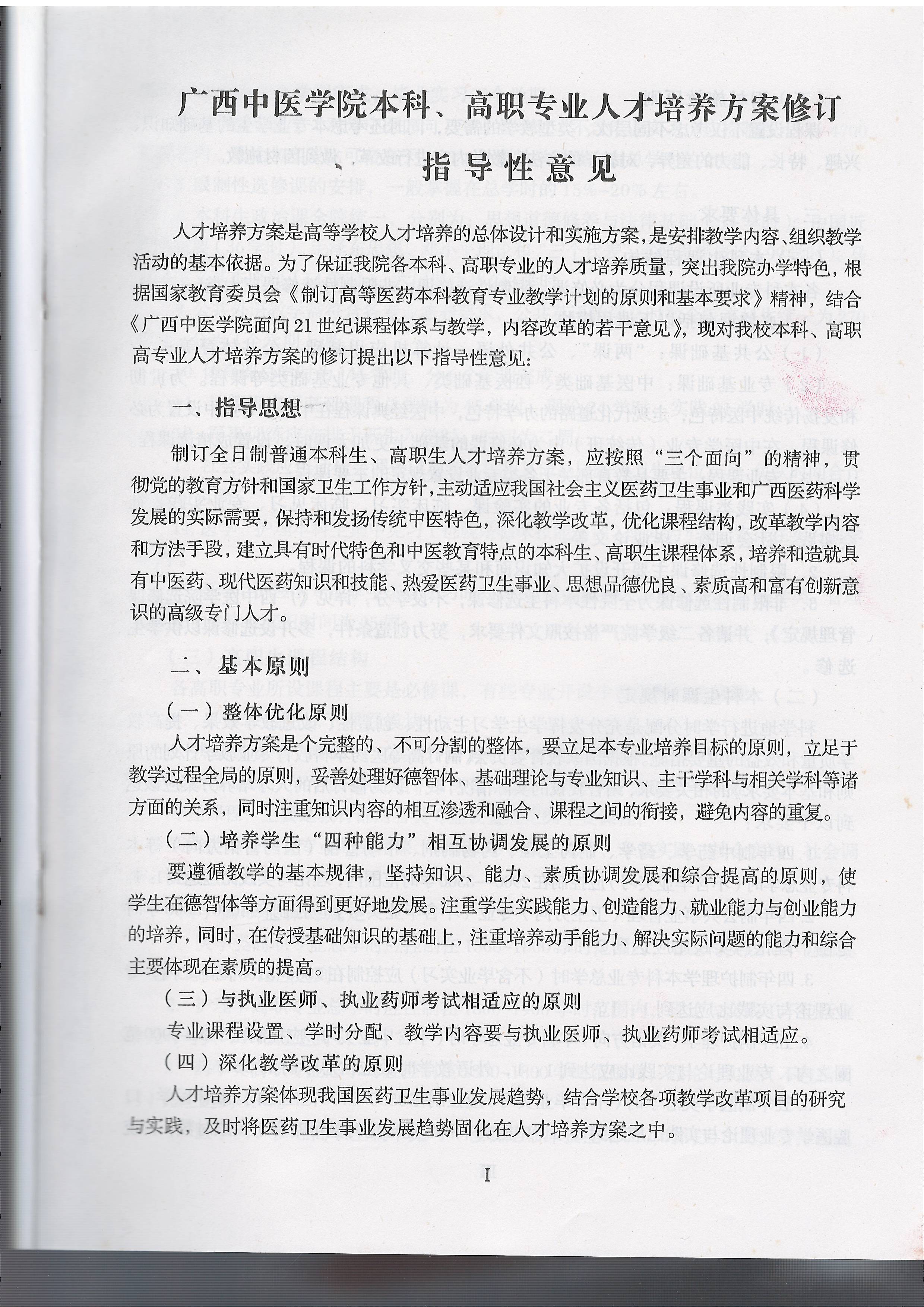 广西中医学院本科、高职专业人才培养方案修订指导意见(2007年版)