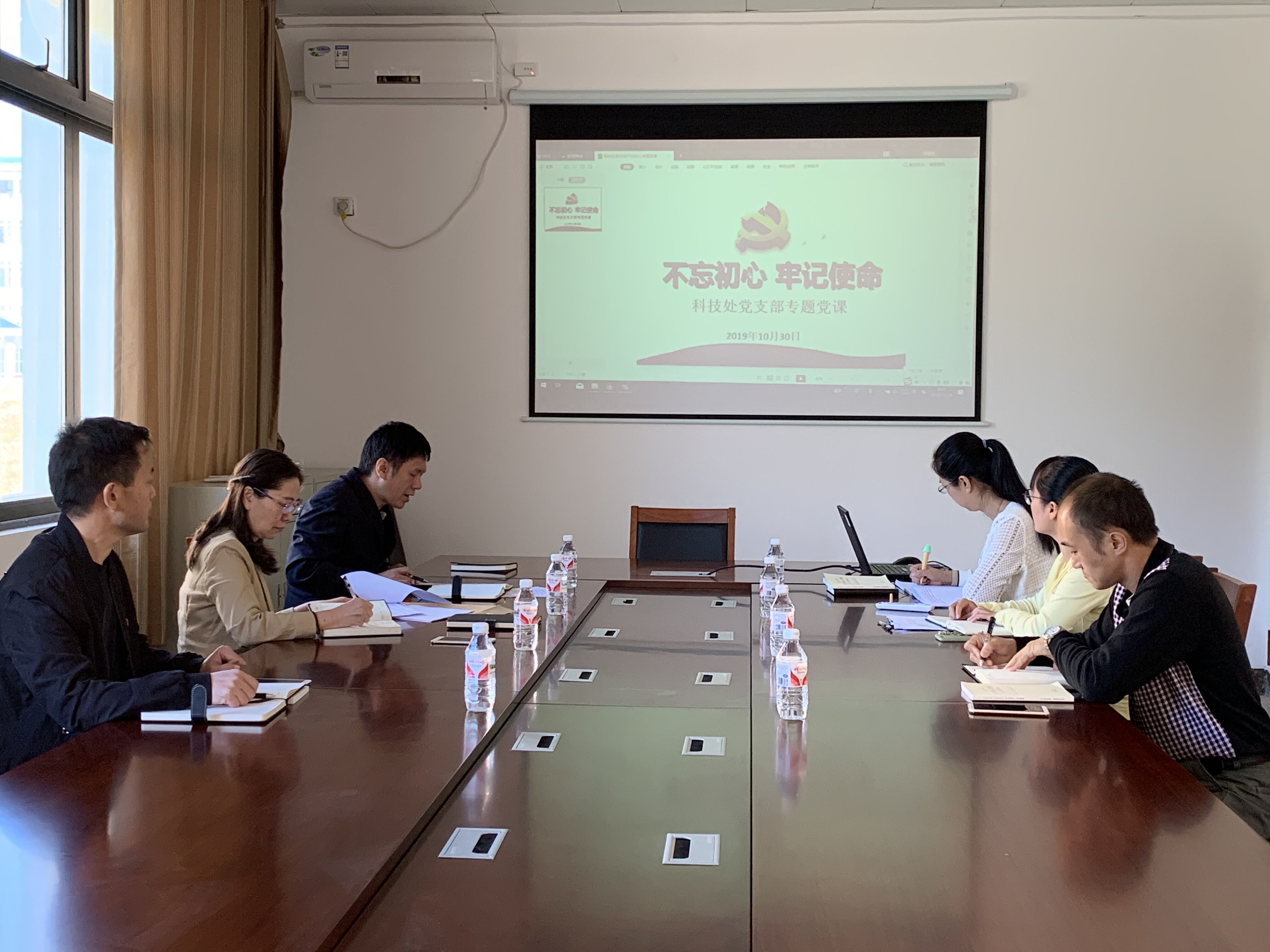 科技处党支部于10月30日上午举行了“不忘初心、牢记使命”专题党课学习会,党课由科技处党支部书记肖健同志主讲,科技处党支部的党员同志们参加了专题学习会。