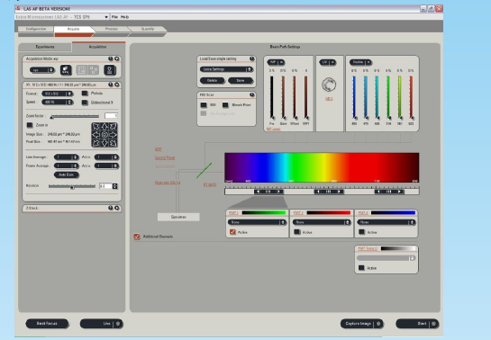 打开软件后,默认在Acquire面板的acquisition中, acquisition mode为xyz, Format扫描像素为512x512, average line and frame average为1。