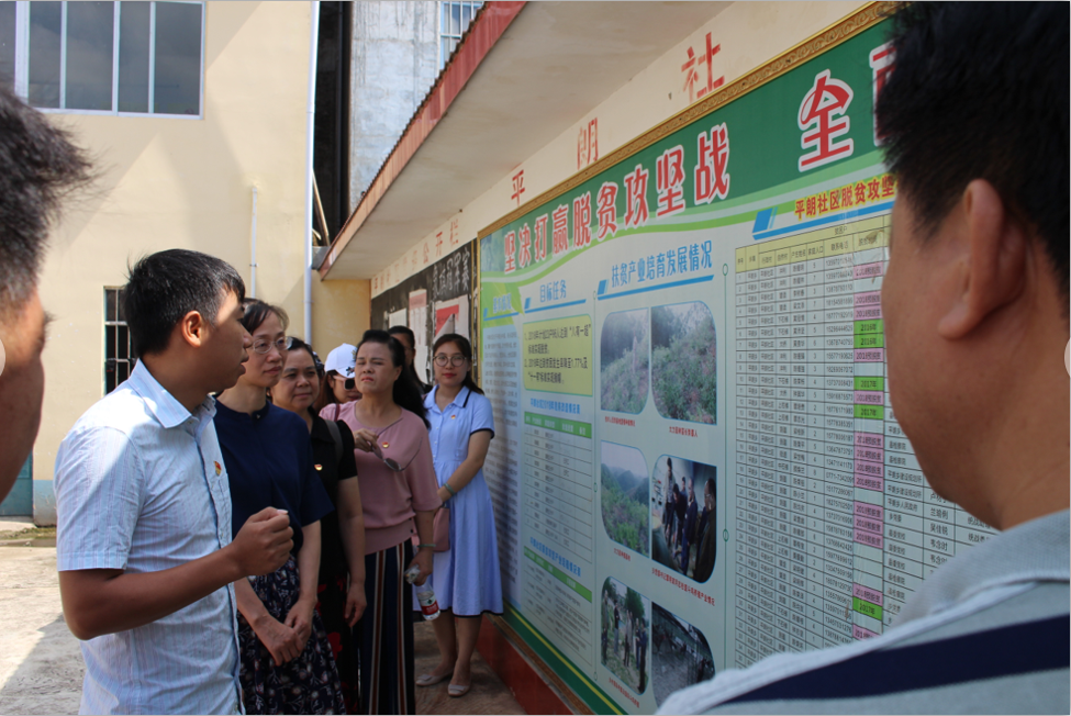 上午8时许,支部书记古标仁带领支部全体党员教师出发,到达平朗县后,平朗乡第一书记首先了介绍平朗乡总体情况,重点介绍了具体扶贫政策与扶贫特色产业———种植牛大力与养殖斗鸡发展情况,随即老师们与村干部、村民有关“精准扶贫”政策的深度交流,对相关政策实施情况进行了基本的了解。