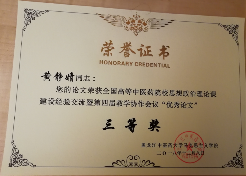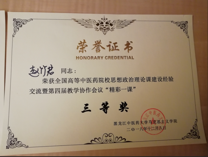 我院赵竹君老师在会上作“您不可不知的法律常识——校园贷”为主题的教学展示,并获取教学展示三等奖的好成绩。我院黄静婧老师的论文获得了全国高等中医药院校思想政治理论课建设经验交流与第四届教学协作会议优秀论文评比三等奖的好成绩。