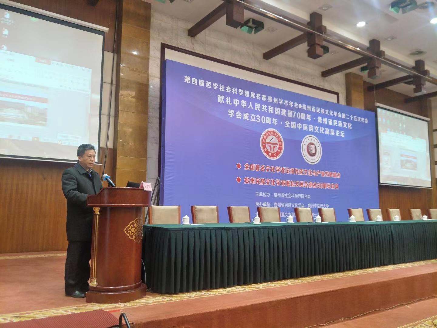 2019年11月30日,第四届哲学社会科学智库名家-贵州学术年会·贵州省民族文化学会第二十五次年会·献礼中华人民共和国建国70周年·贵州省民族文化学会成立30周年·全国中医药文化高层论坛在贵阳召开,自北京、浙江、江苏、湖北、广西、甘肃、云南、贵州等省市区的上百名著名文化学者和中医文化专家汇集贵阳花溪,论道民族文化与中医药文化的发展。此次会议邀请了8名专家做演讲分别来自贵州、北京、湖北、广西,beat365马克思主义学院院长韦兆钧作为特邀专家之一参加此次会议并做了演讲汇报。