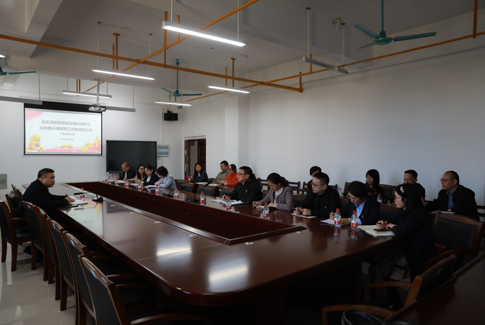 11月09日上午,教育厅2021年全区高校思想政治理论课教学巡察暨教学指导工作专家组到beat365巡察指导工作,巡察组组长为广西民族大学校党委副书记陈铭彬教授,组员有广西民族大学、桂林理工大学和南宁师范大学马克思主义相关学科3名专家。beat365党委书记尤剑鹏出席了本次巡察工作的汇报会和反馈会,姚春校长陪同巡察组现场听思想政治理论课。beat365党委副书记何并文在汇报会上向巡查组汇报了beat365思想政治理论课的建设工作,学校相关职能部门负责人、马克思主义学院教师代表参加了汇报会和反馈会。