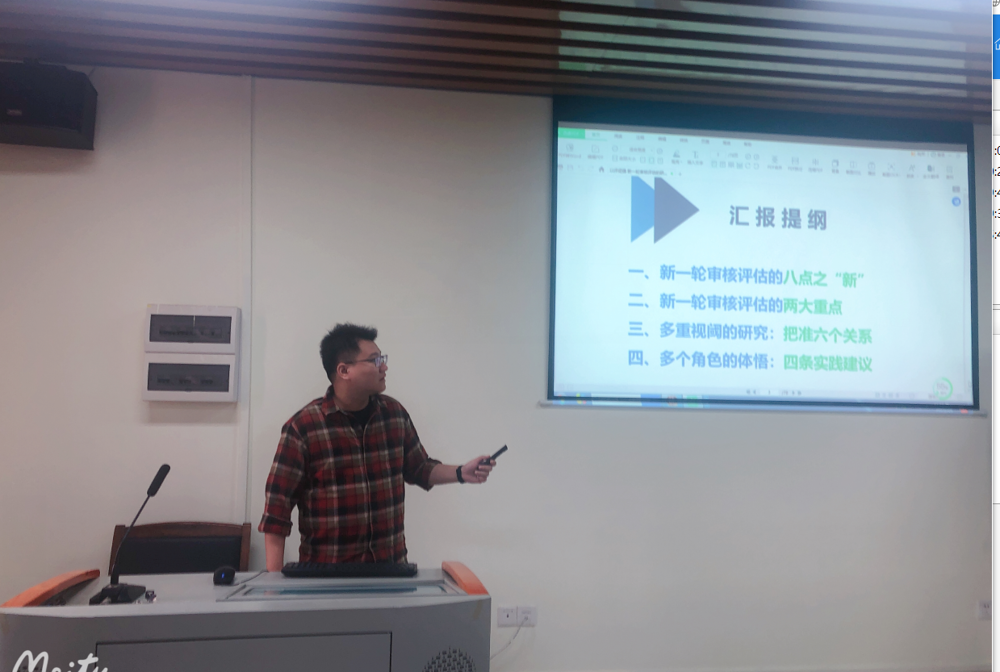 为扎实推进新一轮本科教育教学审核评估工作,结合学校要求及具体安排,4月12日下午,学院分管教学科研的李源副院长作专题培训会。韦兆钧院长主持会议。