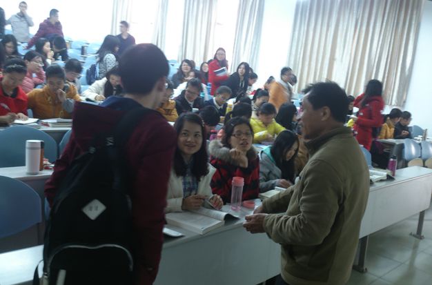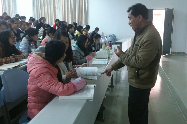 李日东副教授课间询问学生学习情况