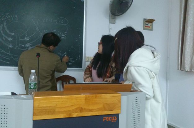 李日东副教授课间认真解答学生提出的问题