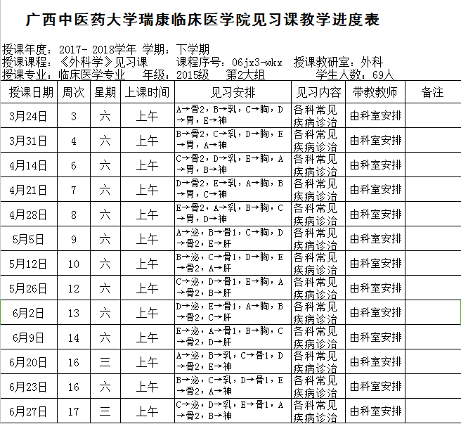 2017-2018下15级临床第2大组《外科学各论》见习进度表