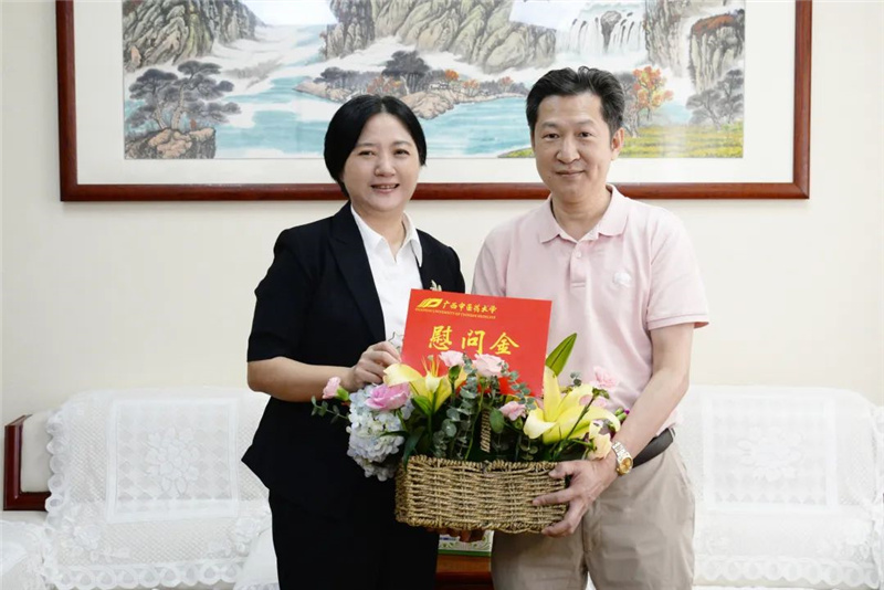 姚春校长为优秀教师代表们送上鲜花和慰问金