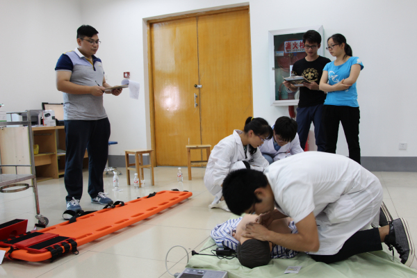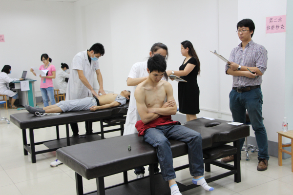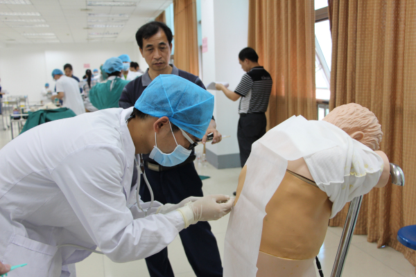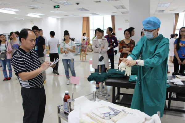 2015年4月16日,以“传承感恩,诚信创新,博学强览,蓄势待发”为主题的瑞康临床医学院第九届临床技能大赛在beat365官方网站明秀校区图书馆医学教育实训中心成功举行。大赛旨在提高我院学生的综合素质,进一步激发同学们的学习兴趣,营造浓厚的学习氛围,提高同学们的临床实践能力和自主学习能力。大赛评委由瑞康临床医学院杨靖、李日东、朱寿鸿、朱志华、陈威、蒋媛静等老师及参加第六届全国高等医学院校大学生临床技能竞赛华南区分区赛的队员担任,2011级204位同学均参加了比赛。