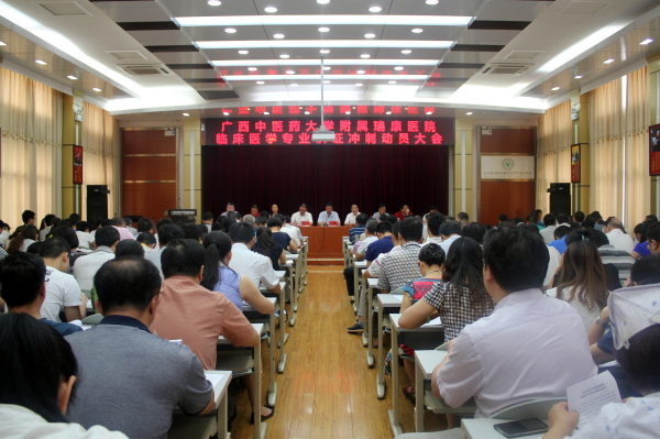 9月28日下午,我院在B座十楼教室召开beat365官方网站瑞康临床医学院临床医学专业认证冲刺动员大会。学校党委书记尤剑鹏率教务处处长唐梅文亲临大会作指示。我院党委书记唐友明,党委副书记、纪委书记陈日兰,副院长庞刚、黄国东、韦思尊、高宏君及教研室正副主任,全院中层干部,所有课程负责人,教师代表,学生代表,认证办全体人员参加会议。会议由我院党委书记唐友明主持。
