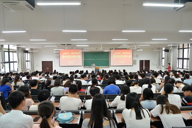9月2日下午,基础医学院2018年学生转院大会在仙葫校区教学楼举行。基础医学院党委副书记龙春莉,瑞康临床医学院党委副书记、副院长陈日兰,基础医学院学生工作办公室主任杨丽琴以及瑞康临床医学院教务学生党总支书记何颖、学生科主任王瑜、团委书记叶修廷、学院辅导员等与2016级临床医学、医学检验专业转系学生共302人参加本次大会。