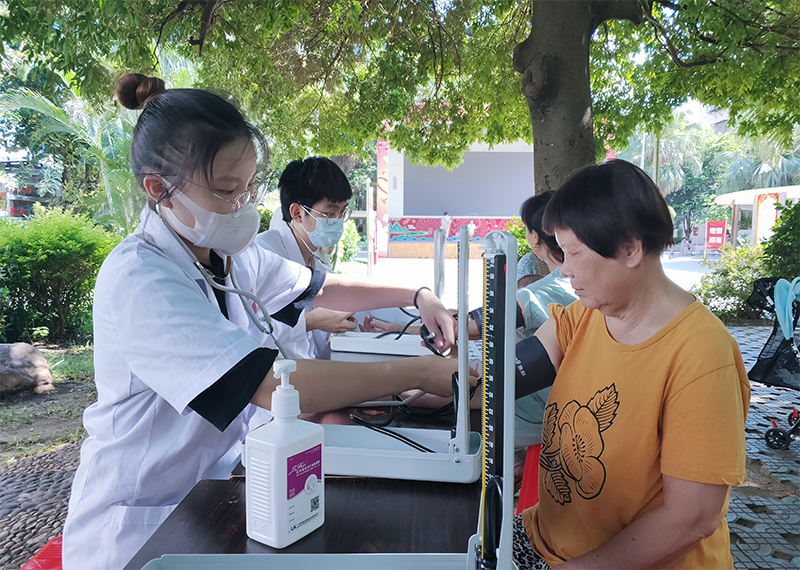 义诊活动从量血压、艾灸、按摩、心肺复苏宣讲等方面开始,前来参与活动的居民络绎不绝,志愿者们精神饱满,认真为居民进行测量血压、艾灸等各项活动。此外,志愿者们针对每个居民的不同情况,耐心地叮嘱他们各种日常注意事项,详细介绍防病和养生知识,提出合理的膳食、运动等生活指导,做到“未病先防”“既病防变”“预后防复”。一位退休老党员在接受了志愿者的艾灸体验后,对本次义诊活动高度赞扬,他说:“你们都是国家的未来,一定要好好学习,将来都成为好医生。”这几句朴实无华的话语让在场的同学都感触颇深,大家表示一定会努力学好专业本领,将来在工作岗位中更好地为人民服务。