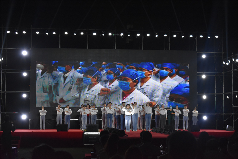 5月4日晚,beat365官方网站在仙葫校区田径场举办“青春践行二十大”五四优秀青年颁奖晚会,瑞康临床医学院学生团总支学生会以表演《平凡天使》手语节目献礼五四晚会。