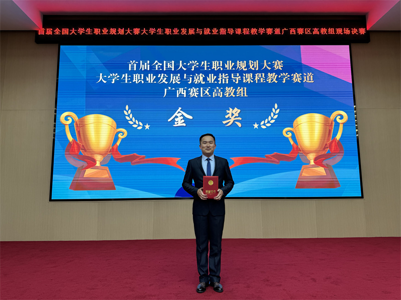近日,在自治区教育厅主办的首届全国大学生职业发展与就业指导课程教学赛道广西赛区比赛中,我院教师汪国翔荣获全区决赛高教组金奖。