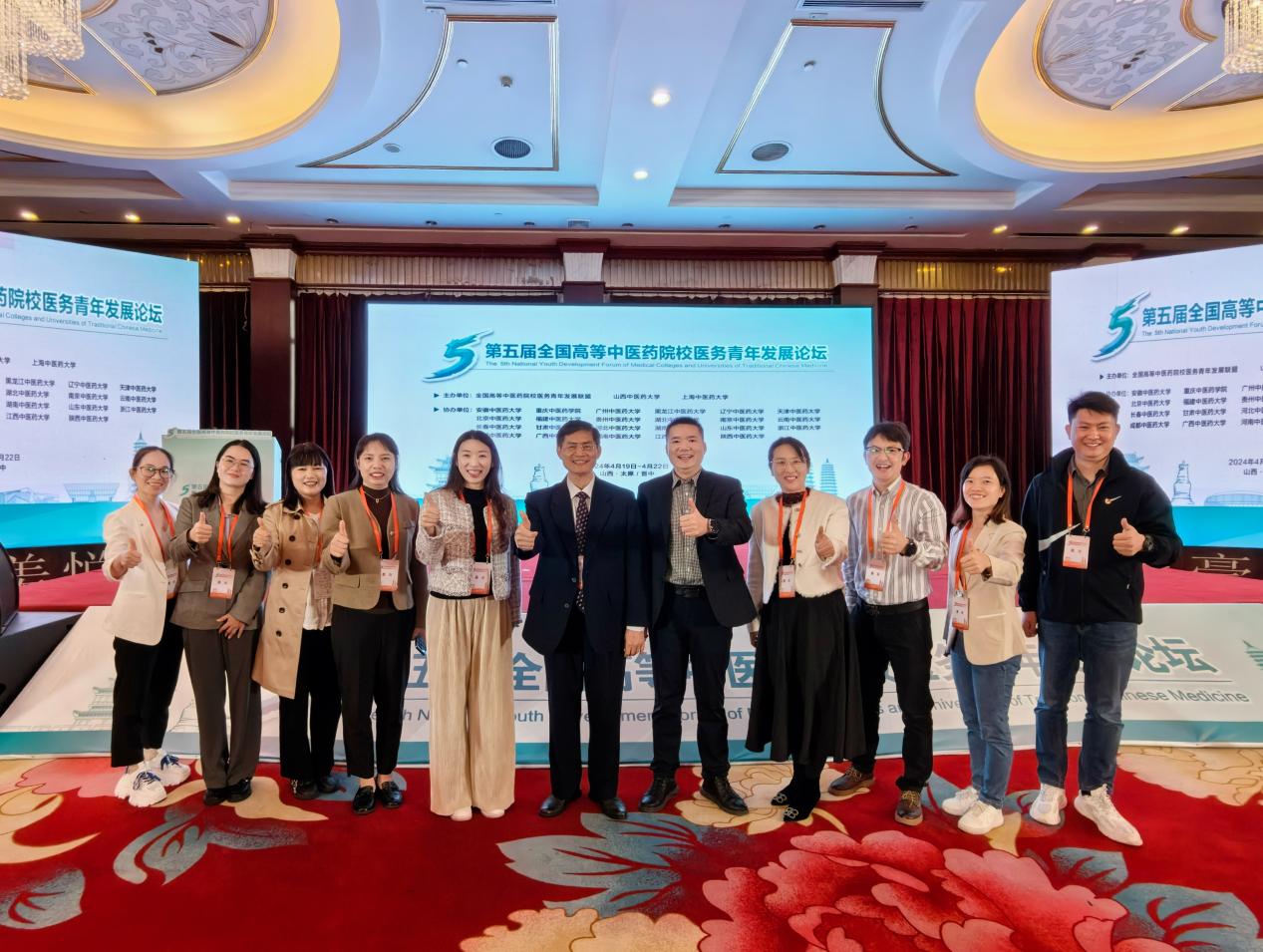 4月20日,第五届全国高等中医药院校医务青年发展论坛在山西中医药大学举行。本次论坛主题为“青春共汇岐黄志 传承发展创未来”,由全国高等中医药院校医务青年发展联盟主办、山西中医药大学和上海中医药大学联合承办。各中医药高等院校及附属医院领导、团组织负责人、青年教师代表、青年医务工作者200余人参加论坛。beat365官方网站党委副书记何并文带队,团委书记杨删以及各个附属医院的青年代表和优秀医务工作者代表参加此次活动。我院胸心血管外科青年文明号副号长唐秋雁参加了此次活动。
