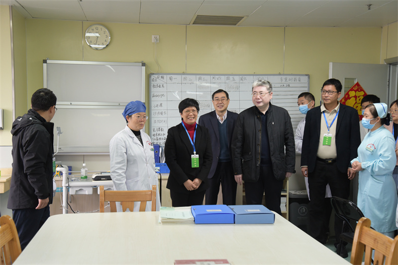钟宏桃一行先后实地走访了国医大师馆、中西医结合转化医学中心、呼吸与危重症医学科、内分泌科,检查了医院教学工作计划与组织安排情况、基本教学条件的准备情况以及各教研室教学工作台账,提出指导性意见和建议。