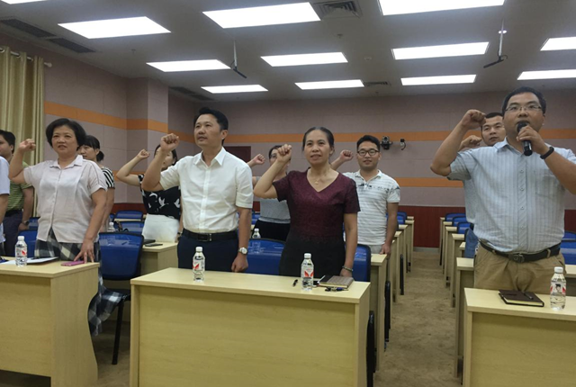 全体党员首先在党旗下重温了入党誓词,然后观看了录制有10位全国优秀共产党员、优秀党务工作者、先进基层党组织代表诠释中国共产党人坚定理想信念、为民实干担当、勤勉敬业奉献的精神风采的《榜样》专题教育片。