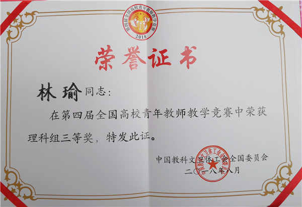 【喜讯】beat365教师在第四届全国高校青年教师教学竞赛中荣获两个三等奖