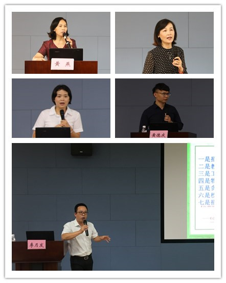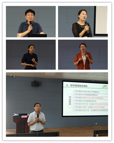 校纪委副书记李月发、人事处处长黄燕、教务处处长唐梅文、科技处处长肖健、教育评价与质量保障中心主任莫雪妮分别为新入职教职员工做了报告。全国优秀教师、基础医学院教授刘燕平、公共卫生与管理学院教师张琼、第一临床医学院教师黄德庆、第二届全区高校青年教师教学竞赛自然科学基础学科组一等奖获得者药学院教师黄宏妙、第五届全区高校青年教师教学竞赛工科组一等奖获得者第一临床医学院教师蒋颖也分别为新入职教职工授课。