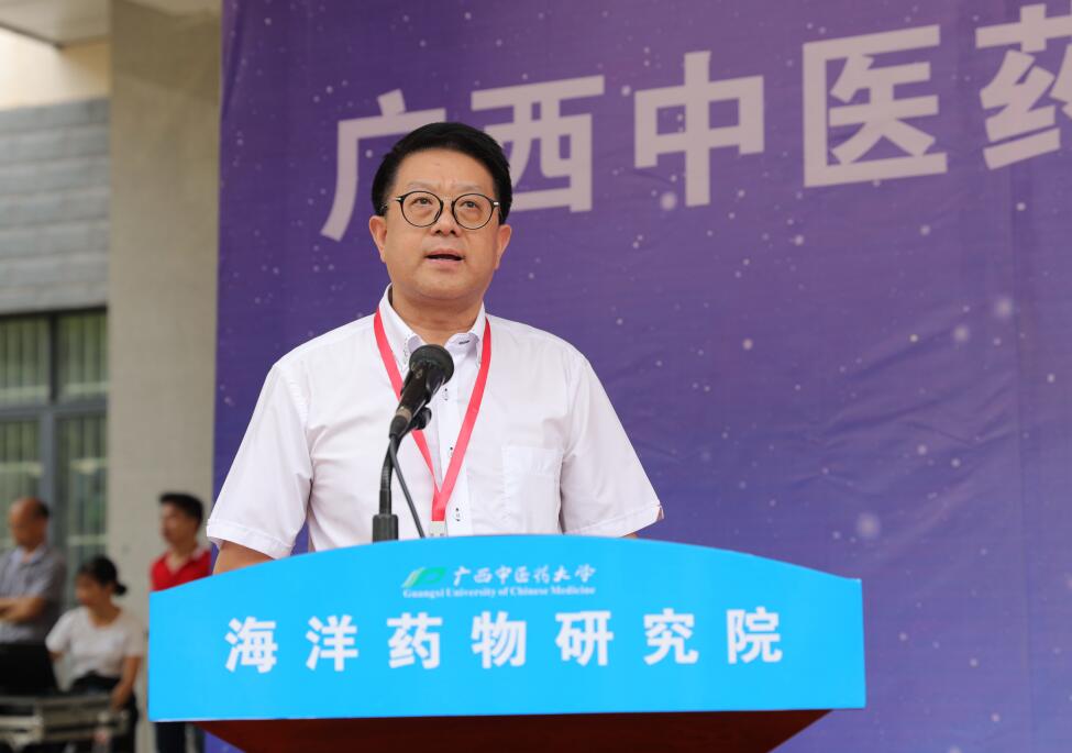 蒋和生在致辞中指出,广西拥有“一湾相挽十一国”的特殊地理位置,海洋生物资源丰富,在海洋药用植物方面拥有兼具改善生态环境和神奇药用价值的沿海滩涂红树林,开发利用空间巨大。近年来,广西海洋和渔业部门加速向“蓝色药库”进军,海洋生物医药产业得到迅速发展。beat365官方网站海洋药物研究院成立一年来已取得了多项喜人的成绩,希望海洋药物研究院进一步落实国家、广西区内海洋事业发展的战略部署,努力把研究院培育成为我区海洋经济发展的生力军,在海洋事业发展中大有作为。