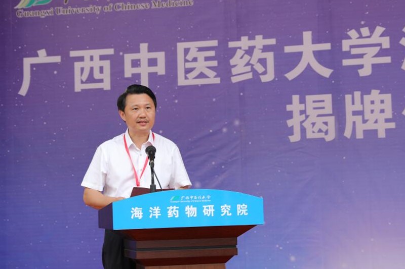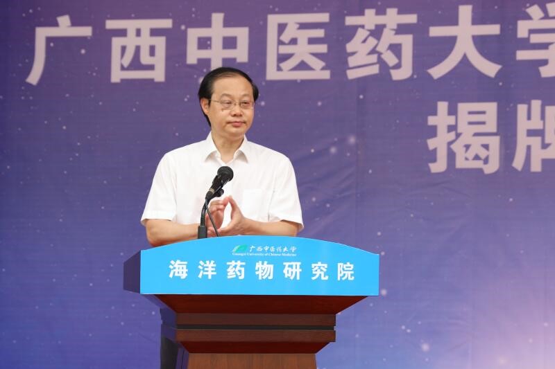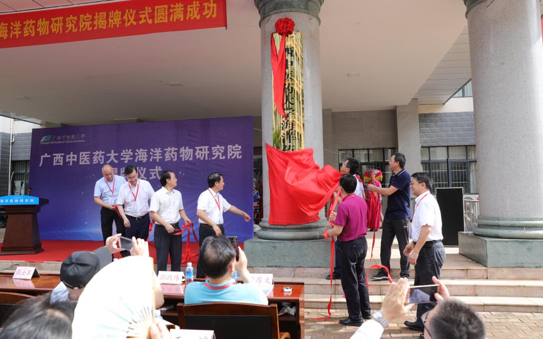 揭牌仪式上,蒋和生、庞宇舟、戴铭、黎甲文、张士军、焦炳华、谭仁祥、刘永宏等为海洋药物研究院揭牌。