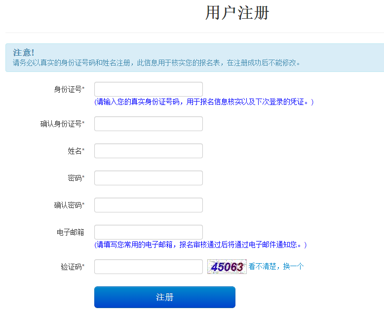 如果考生已经注册账号,可以输入相关信息直接登陆。如尚未注册新账号的用户,可以点击“注册新账号”按钮,弹出用户注册界面。