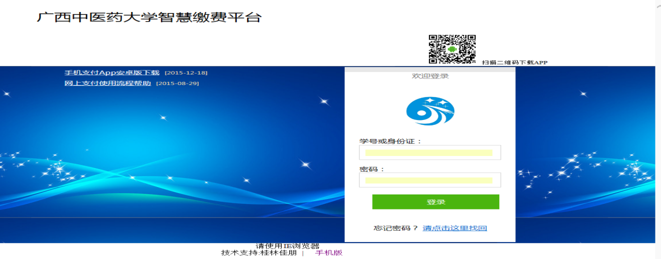 或者通过扫描二维码下载手机APP,进入手机APP“其它缴费”页面进行缴费(目前只开通安卓手机APP)
