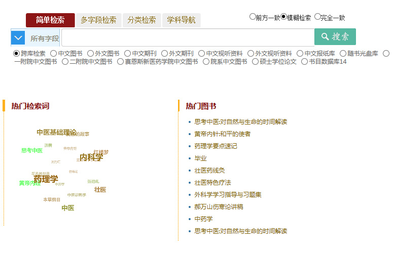 (1)馆藏查询:检索图书馆馆藏纸质图书。
