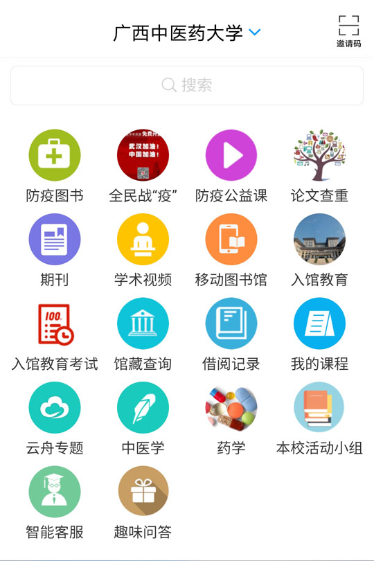 微信或QQ扫描”学习通“二维码,也可在应用商店搜索"超星学习通"下载安装该APP;用手机号注册登录,再绑定“学校/机构码”(beat365官方网站)和个人借阅证号(与校园卡一致,学号或工号);进入学习通首页后请点击右上角的“邀请码”,然后输入邀请码:yzgxzyydx,便可进行图书检索: