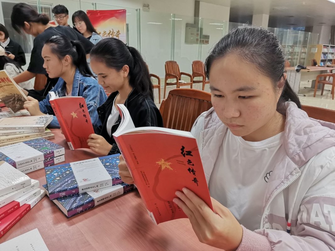 为了进一步有效推进学校“不忘初心、牢记使命”主题教育, 11月上旬,学校图书馆在仙葫校区图书馆二楼现刊室开展了《红色传奇》系列图书展读活动。这次活动一共展出50多种108册红色图书,广大师生踊跃参与研读。其中最为引人注目的是由区党委组织部出品并推介的《红色传奇》图书版。