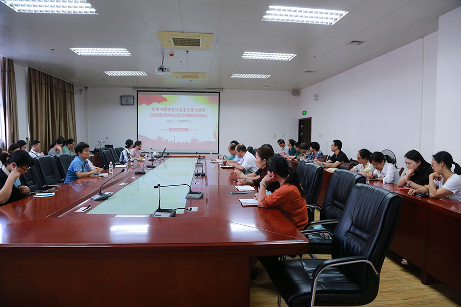 10 月28 日下午,图书馆党支部以党课和主题党日活动的形式组织全体党员深入学习党的二十大精神,邀请教学教辅党委书记罗晓燕讲授党课,全馆民主党派和其它群众馆员列席党课。
