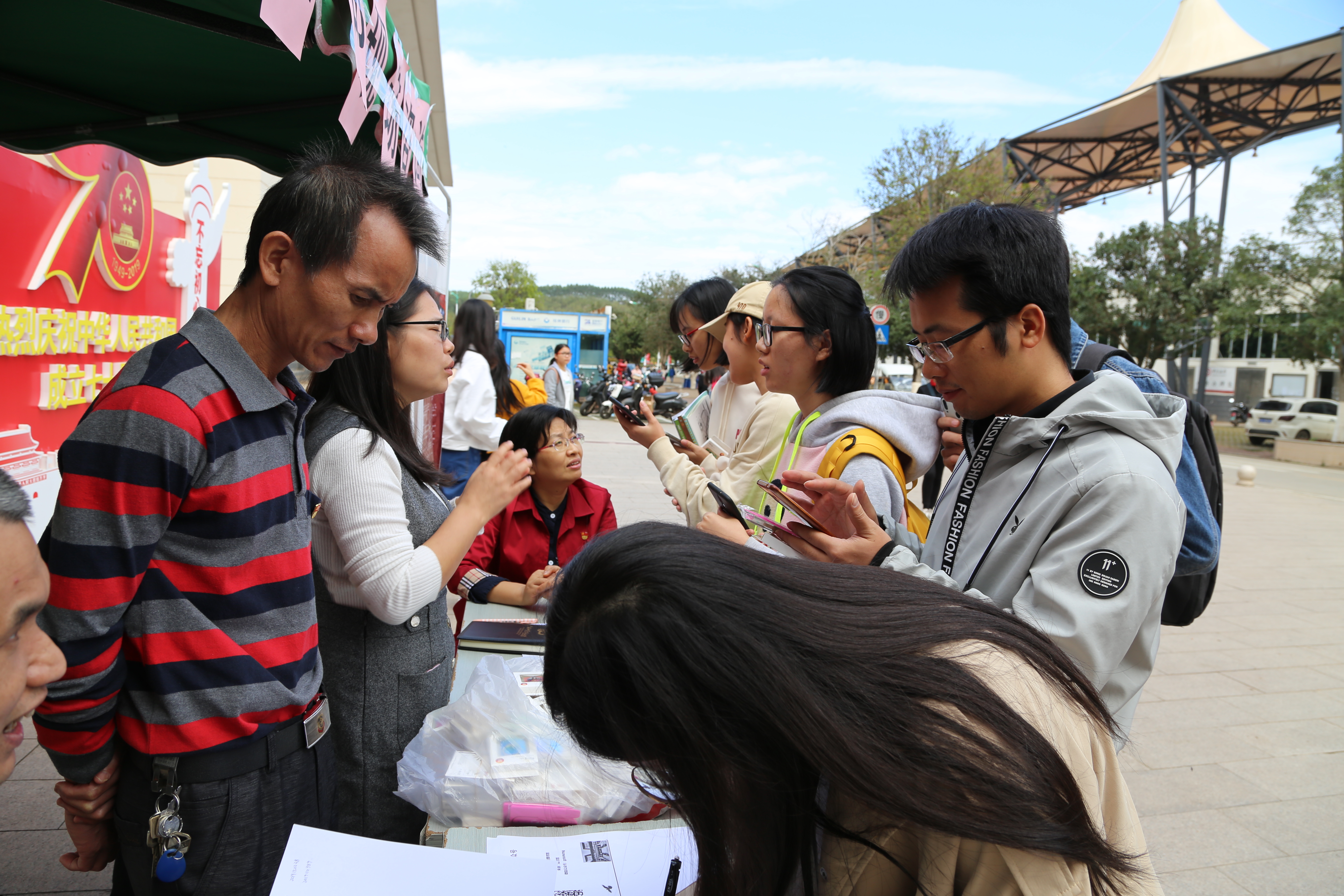 为了更好地为广大师生提供优质服务,进一步推进“不忘初心、牢记使命”主题教育,为身边群众办实事好事,以实际行动践行初心和使命,11月14日利用午休时间,图书馆党支部全体党员志愿者在书记蒋才武带领下,在仙葫校区五和食堂门口广场,开展了一次现场咨询服务活动。