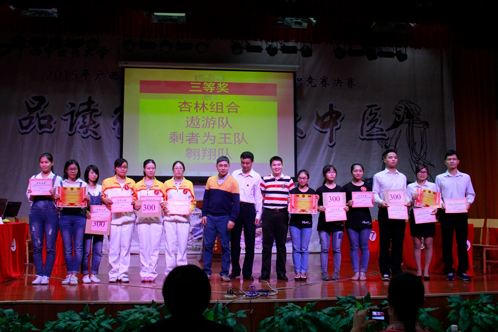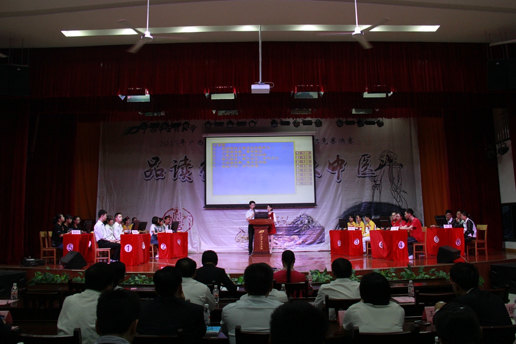 比赛由校团委主办,基础医学院协办,校学生会承办;决赛在八支参赛队伍的开场秀中拉开了帷幕。接着各参赛队伍进行了晋级赛,包括必答题以及别开生面的猜词题和抢答题,决出了前四名。再由前四名进行挑战题和风险题的比拼,一决胜负。比赛期间掌声迭起,高潮不断。观众互动环节更是把比赛推向了又一个高潮。各参赛队在友好热烈的气氛中完成了比赛。最后,依照各参赛队伍的积分进行排名,“坎卦”队以250分的高分位居榜首。评委对各队伍的表现都进行了精彩的点评,并鼓励同学们加强对中医经典知识的掌握,鼓励中医、中西医结合工作者学习和钻研中医经典,夯实中医理论基础知识,促进临床水平的提高,从而更好地发挥在临床上的骨干作用,进一步提高我院中医药队伍的整体素质。