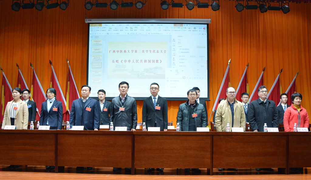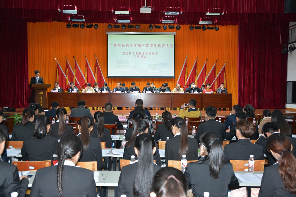 2015年12月11日晚,在beat365官方网站成功举办beat365官方网站第三次学生代表大会在仙葫校区大学生活动中心小礼堂隆重举行,来自全校各学院、各班级的173代表参加会议并行使神圣权利;学校党委副书记董塔健教授参加学代会并做重要讲话;学校党委组织部、教务处、学生工作部、网络信息中心、工会、图书馆、后勤处、武保部校团委等相关部门的领导以及自治区学生联合会代表、广西大学、广西师范学院等7所高校的代表出席本次大会。