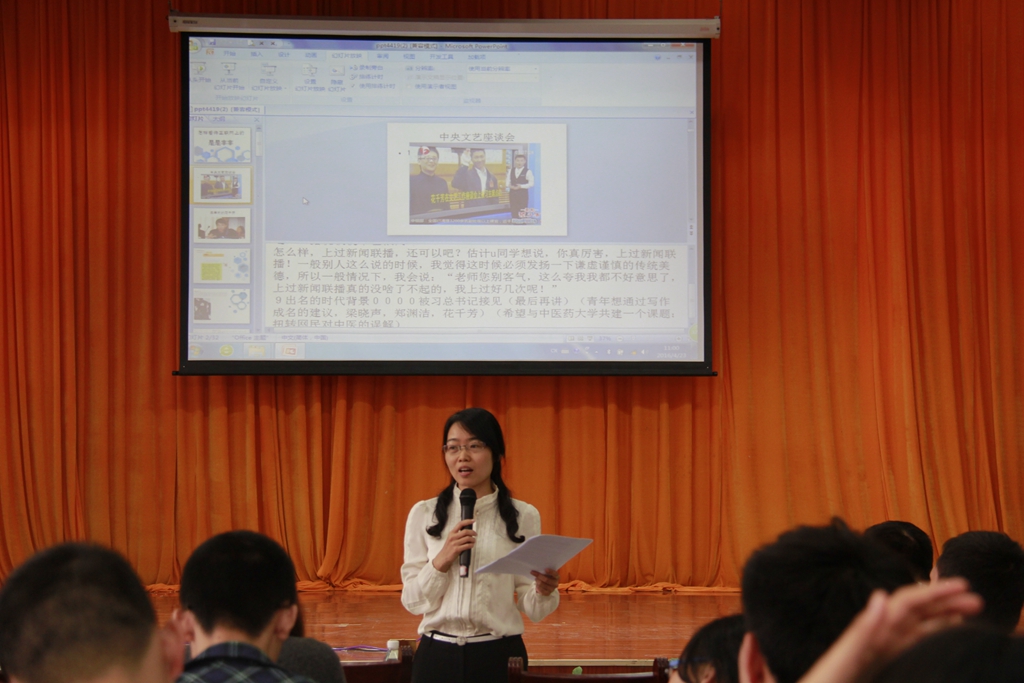 花老师还对同学们提出了一点疑问:“为什么中国网民不信任中医?”他希望beat365官方网站的同学们能通过自己的能力来树立中医在中国老百姓中的威望。提问环节时,花老师针对同学提出的问题表达了自己的见解,犀利的言语、合理的分析让同学们心生佩服,大家都不约而同地鼓掌。