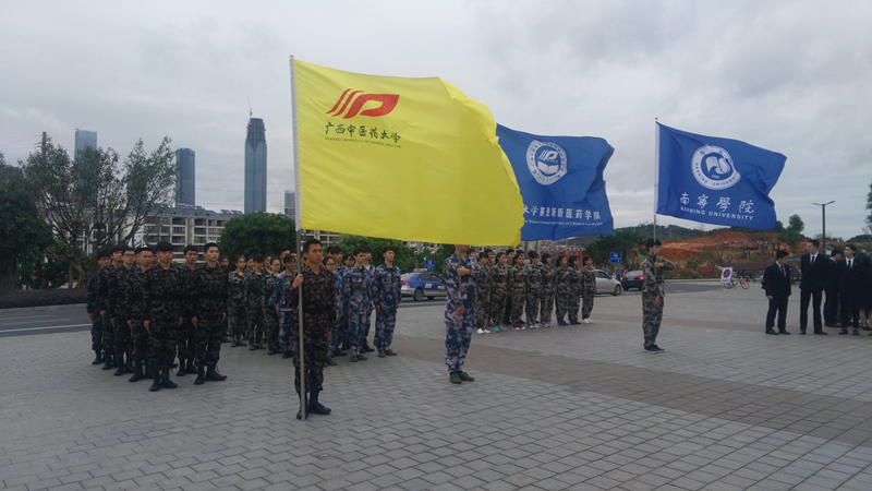 3月25日,beat365国旗队联合赛恩斯新医药学院、南宁学院的国旗队在南宁市青秀山风景区帽子岭山顶广西学生军抗日烈士纪念碑合办了“青山尚有忠烈在,红旗当有后人擎”缅怀广西抗日学生军英烈扫墓活动。