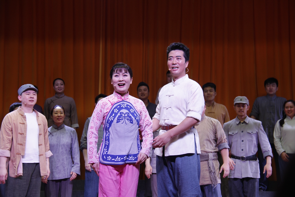 最后,歌剧《小二黑结婚》将晚会引向高潮。讲的是抗战时期小二黑与小芹历经磨难难终成眷属的故事。演员们的精湛演绎,充分凸显了歌剧细腻有神。剧中的经典唱段《清粼粼的水蓝莹莹的天》是杨兰春先生根据家乡地方戏曲平调落子的精华旋律创作而来的歌剧,明快而富青春气息的音乐展示了剧中主人公小芹纯朴的性格,把她思念恋人的急切心情和对爱情的憧憬表现得惟妙惟肖。而其中充满生活气息的语言,诙谐幽默,让现场气氛活泼,笑声不断。