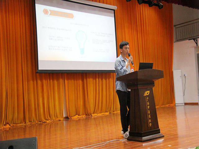 第二部分由陈晓东老师主讲,他对大学生创新创业训练项目、“互联网+”大学生创新创业大赛、beat365官方网站大学生课外学术科技作品竞赛、“远志杯”大学生课外学术科技作品竞赛、“挑战杯”大学生课外学术科技作品竞赛、“创青春”广西大学生创业大赛等创新创业赛事的申报要求、大赛流程、注意事项等内容做了全面而详细的说明,并激励同学们积极参与大学生创新创业活动,给有意向参与大学生创新创业活动的同学们指明了方向。讲座最后,陈晓东老师还分享了以往参加过创新创业活动的多个优秀项目,给我们以启迪。