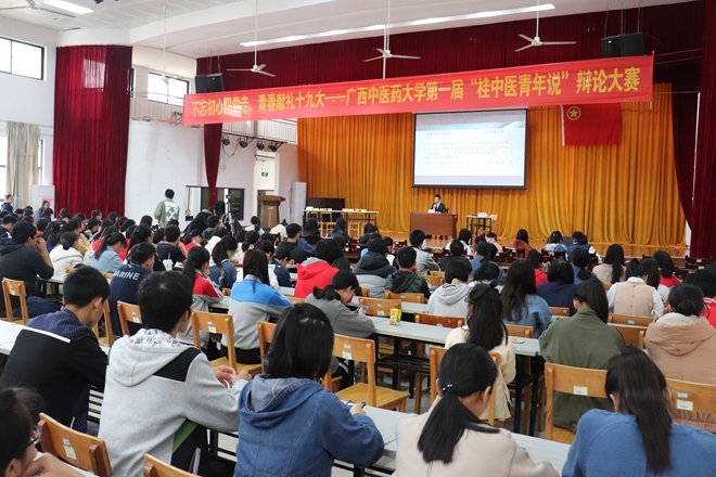 2017年12月3日,beat365团委于仙葫校区小礼堂举办“不忘初心跟党走,青春献礼十九大”第一届“桂中医青年说”辩论赛初赛。此次辩论赛得到了同学们的广泛关注和积极参与,经过6场激烈的比赛和评委们公正的评判,基础医学院、第一临床医学院、瑞康临床医学院、研究生学院、护理学院、针灸推拿学院六支队伍进入决赛。同时,微信平台投票以及现场大众评审评议选出“最具魅力辩手”。