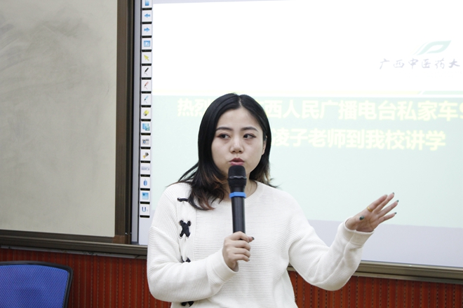 杨凌子提出,首先需改变对广播电台的认知误区。主播不一定是字正腔圆,不一定是科班出身,非科班出身可能知识面更广,比如医学生,可以利用自身的专业知识拓展话题,在涉及一些专业学术上的东西更具有发言权。其次她给广播员们讲解了广播的种类。可分为伴随性广播、内容性广播、碎片式广播,都应以“内容为王”,稿件做到简短精要,形式多样,贴近生活,能引起他人的兴趣。