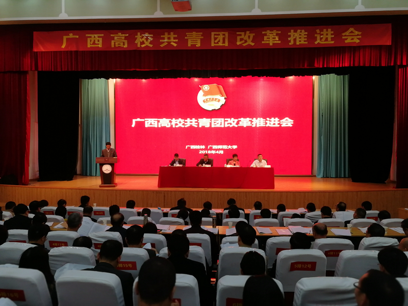 4月9日上午,全区高校共青团改革推进会在广西师范大学举行,自治区高校工委副书记覃萍、共青团广西区委副书记李晓勇参加会议并讲话,全区76所高校分管共青团工作的校领导、团委书记参加会议,会议总结了高校共青团改革工作推进情况。beat365党委副书记何并文代表学校做改革典型经验交流发言。