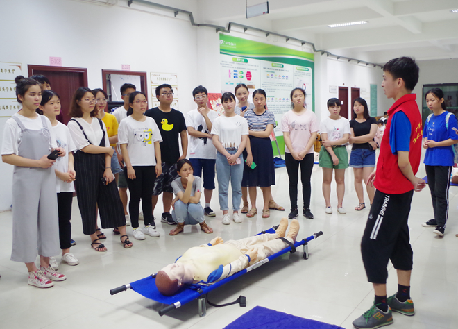 为增强在校大学生的应急救护能力,增加对急救技能的熟练度,普及急救知识,2018年6月4日至6月8日的晚上,beat365官方网站大学生红十字会在大学生活动中心B座举行了为期五天的beat365官方网站第二课堂成绩单“创新课程”——急救培训课并圆满结束。