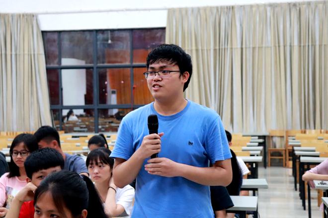 王万奇老师引用自己到基层支教,到日本学习交流等深刻的经历,为我们解读习近平总书记对我们青年大学生的殷切期盼:一是要爱国,忠于祖国忠于人民;二是要励志,立鸿鹄志,做奋斗者;三是要求真,求真学习,练真本领;四是要力行,知行合一,做实干家。王万奇老师还现场解答了几位同学的提问,以自身丰富的经历为同学扫清眼前的迷雾。