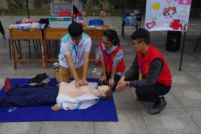 在广外校青协的热情接待下,大家准备好手法按摩与艾灸的场地,并接待好前来参与义诊的同学,手法按摩在缓解疲劳的同时还能增进健康,艾灸除了保健更能收到防病治病的效果,吸引了众多学子前来了解,体验者更是络绎不绝。与之毗邻的场地在演示心肺复苏操作,在志愿者的引导下,许多初学者都能掌握正确的施救方式,纠正了错误动作,更新了相应知识。测量血压时志愿者会根据对应的情况给出一些合理的建议,助力维护身体健康,同时普及红十字知识,增进对红十字的了解。