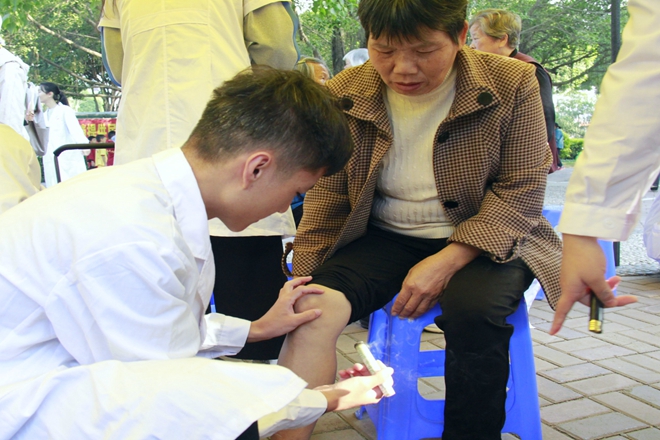 活动分为两类项目,一是推拿按摩、艾灸、专家咨询、血压测量、CPR心肺复苏演示等医疗服务及医学知识普及,二是垃圾分类知识宣传讲解。