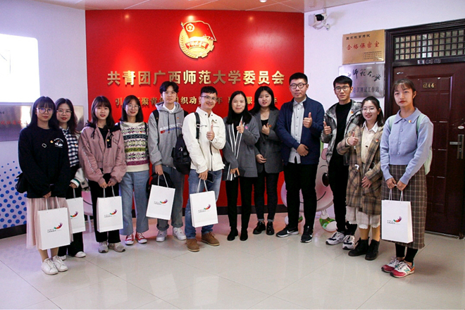 2019年11月22日,在校团委办公室主任、社会实践部部长(合署)陈晓东的带领下,beat365团委学生团务管理中心、校学生会、校社联一行7人先后到广西师范大学、广西科技大学交流学习共青团新媒体建设工作。