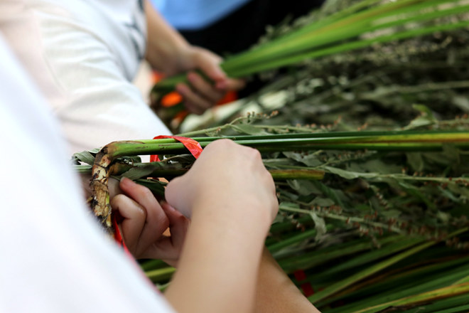 此次活动分为两个部分。第一部分为壮瑶药协会成员和志愿者于昆弟廊道向同学们展示如何制作香囊、如何选取菖蒲艾叶和点雄黄酒,并指导同学们亲手制作香囊和包捆菖蒲艾叶,同学们十分踊跃的参加到活动中。此外,壮瑶药协会成员还通过讲解的方式,向同学们讲解了香囊的药材成分及其功效作用。在领取完香囊后,同学们还在协会的宣传横幅上签下了自己的名字。