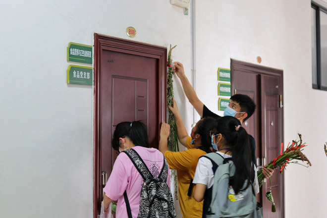 第二部分为协会其余成员前往仙葫校区大学生活动中心B座校团委老师的办公室及达道楼药学院教研室为老师们赠送香囊和在老师办公室挂上艾叶和菖蒲,并向老师们介绍了壮、瑶民族在端午节的一些传统习俗。