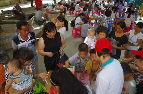 经过紧罗密布的筹备,我们的暑期社会实践顺利进行。当天上午10点到达南宁市友爱村,现场布置过后吸引了许多的当地老人、妇女和小孩。量血压和按摩方块最受欢迎,特别是当地的老人和妇女对我们的服务赞不绝口。整个实践活动最有趣的部分就数兔子舞表演,深受小朋友们的喜爱。下午人数逐渐减少,准备结束活动,队员们收拾好现场,进行合影留念。