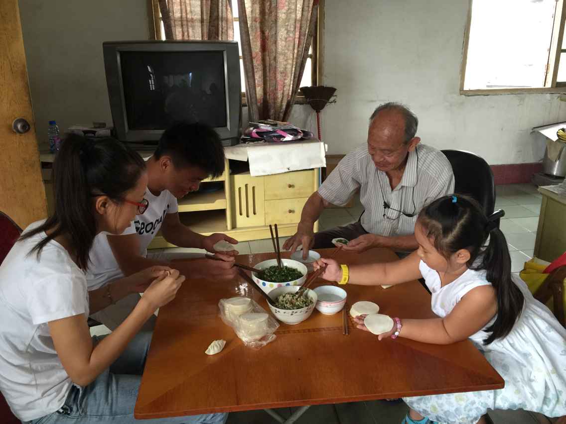 柳北区申爷爷,志愿者在帮爷爷包饺子